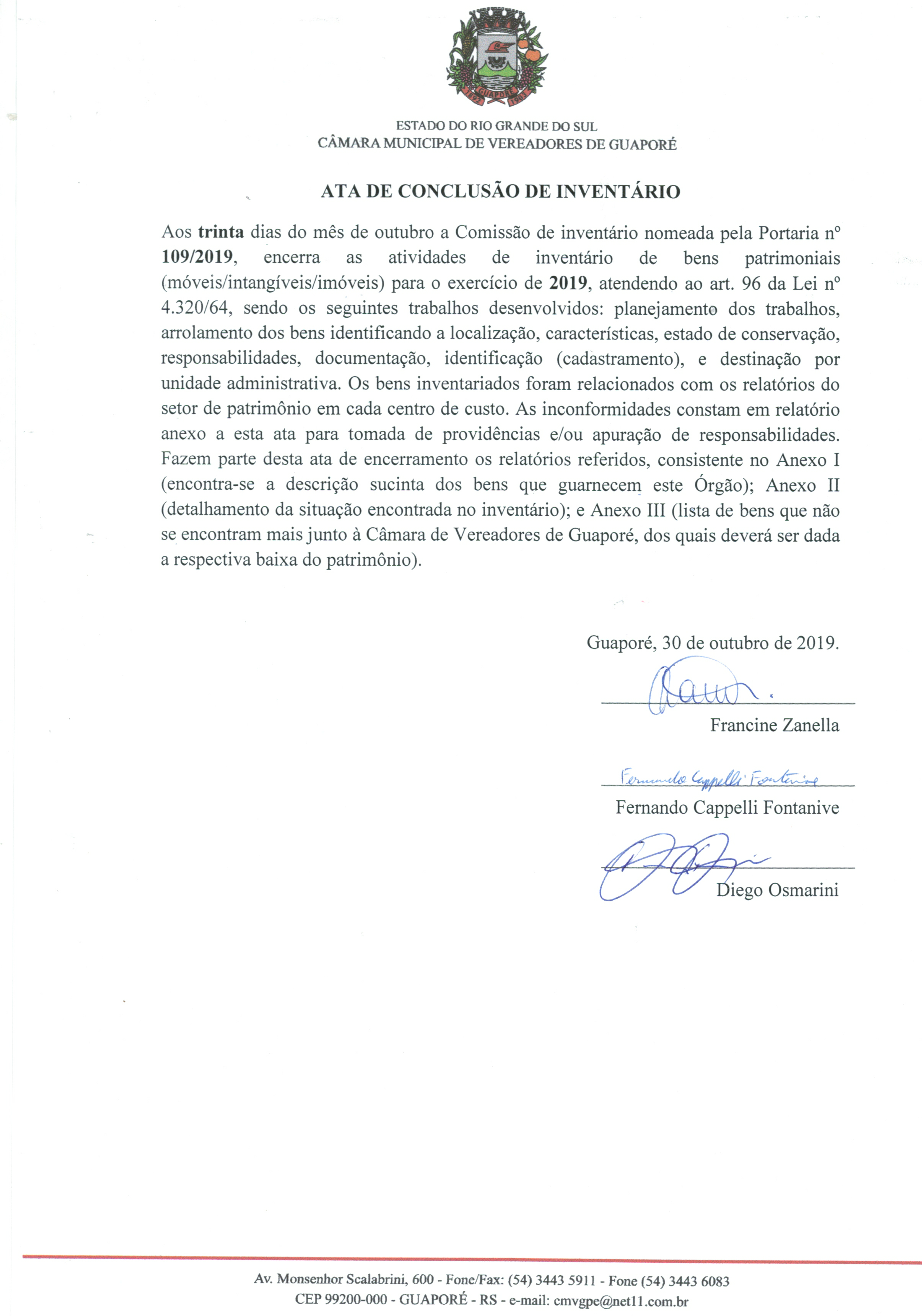 • Ata de Conclusão de Inventário - 2019